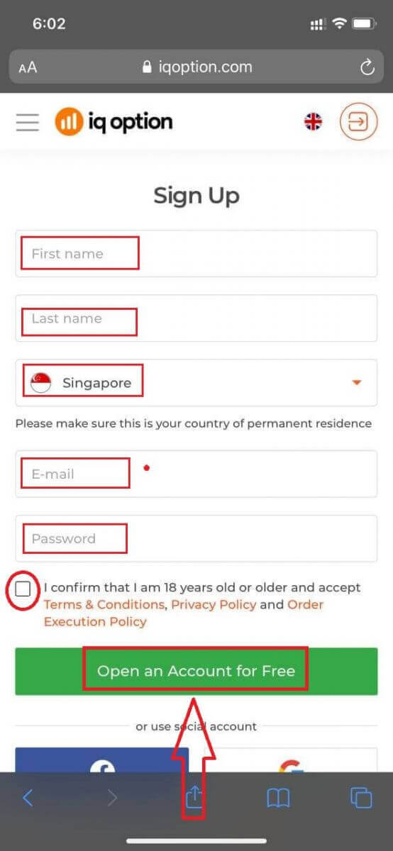 Open IQ Option account on Mobile Web Version